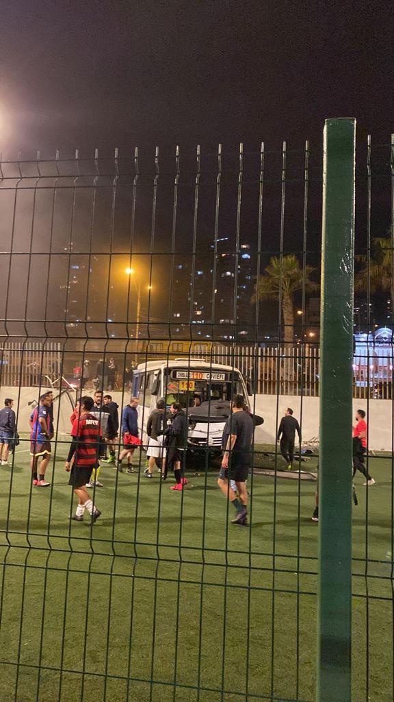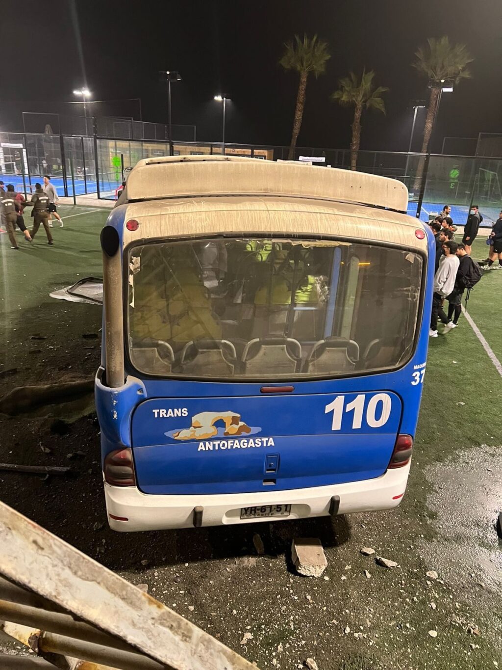 Finalmente, el imputado al continuar su trayecto llega a Costanera Sport, ubicado en Avda. República de Croacia, lugar donde pierde el control del microbús, colisionando rejas perimetrales del reciento y cayendo al interior de éste.
